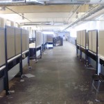 We quickly decided that the building is photogenic, as we had seen beautiful photos of it in alumni publications. Rob stopped to pose for a photo at the door. We were pleased to find the door un-locked and went in to take a look. The building is constructed without wall, ceiling or floor finishes at the interior. Presumably, this allows the students to understand the construction of the building because they can see it. However it was particularly challenging for the architects to present a clean, tidy, professional look. The mechanical, electrical and plumbing and fire suppression systems are all exposed. For example, you can see how the water gets to the toilet rooms and power to the lights. Nothing is a secret. Rob recalls that the studios were always a mess, so we did confirm that some things never change…